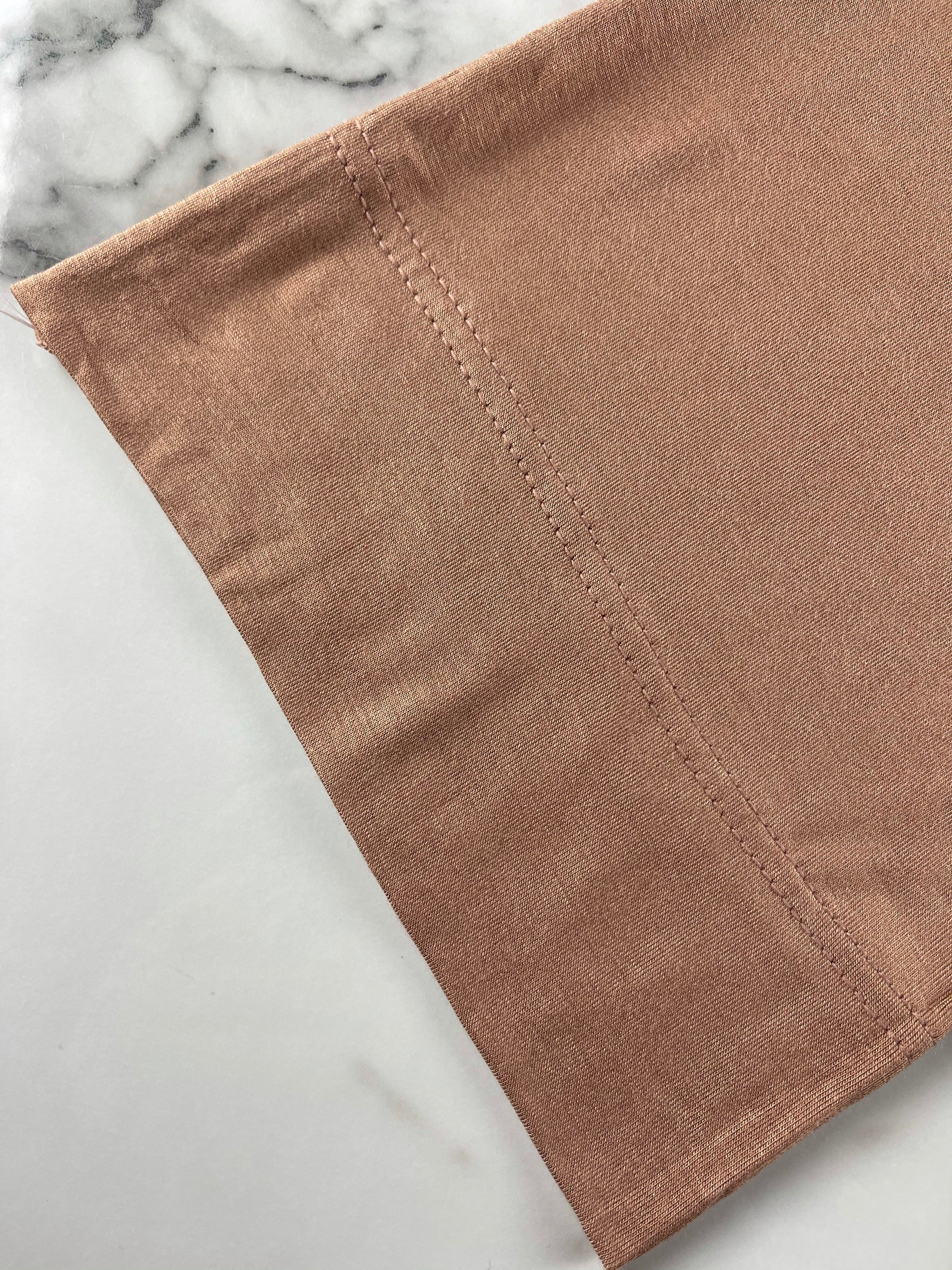 Our Jersey scarf is a favourite, the soft and elegant flow that is associated with the fabric makes it the ideal scarf on the go. The stretch in the fabric allows you to ensure a secure fit and as well looking effortlessly chic. This is why the under caps' are made of jersey to give you the stretch and as well secure fit.